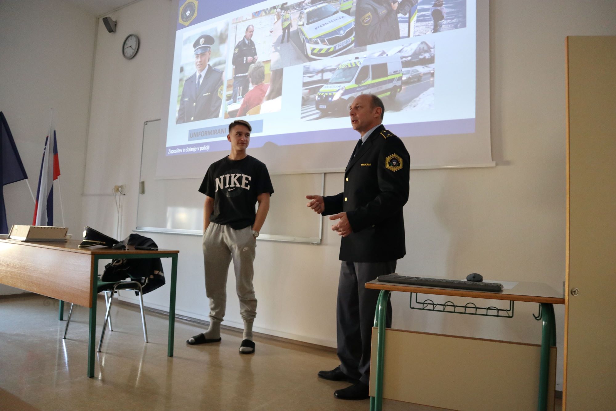 V sredo, 31. 1. 2024, so dijaki 4. letnika programov ekonomski in medijski tehnik v okviru poklicnega usmerjanja ter dijaki programa ekonomska gimnazija v okviru pouka poslušali predavanje predstavitve poklica policist. Policijski inšpektor Roland Brajič je dijakom predstavil delo policista na različnih področjih, od policista na (območni) policijski postaji, prometnega policista, vodnika službenega psa, konjenika, kriminalista in kriminalističnega tehnika do policista, ki opravlja delo v okviru varovanja državne meje, policista v Posebni policijski enoti, Centru za varovanje in zaščito ter Specialni enoti. Prav tako so bile predstavljene možnosti za šolanje in zaposlitev v Policiji. Predavanje je bilo popestreno s predvajanjem kratkih in nazornih predstavitvenih filmčkov.