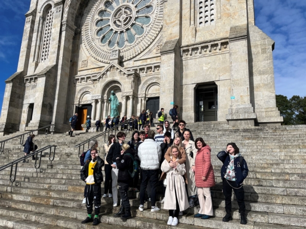 V soboto, 24. 2. 2024, smo dijaki odšli na ekskurzijo v Viana do Costelo. To obmorsko mesto leži na severu Portugalske, skozi katerega teče reka Lima, ki izvira v Španiji. Mesto se deli na premožnejši in revnejši del, iz tega pa izvira tudi legenda. Govori se, da sta se tam zaljubila revež Manuel in princesa Ana, po kateri je mesto nato dobilo svoje ime. Mesto je znano predvsem po svoji bogati kulturi in tradicionalni glasbi, na katero so zelo ponosni. Največja znamenitost je cerkev Santuário de Santa Luiza na hribu, kamor smo se odpravili tudi mi, saj ponuja lep razgled nad Atlantikom. Po ogledu smo se sprehodili do centra mesta, v katerem se nahajajo baročne ulice. Tam smo imeli prosti čas za kosilo in raziskovanje, nato pa odšli še do same obale Atlantskega oceana. Za to morje so značilni veliki nemirni valovi, ki so tudi zalili mnoge dijake. Čeprav so bili mokri, so se vsi zadovoljni peljali nazaj v hotel.