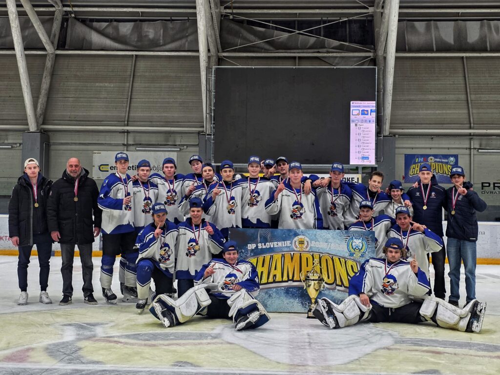 Lev in Oskar Berc ter Lev Vukelj, dijaki 1. h, del hokejske ekipe HK MK Bled, so v petek, 3. 4. 2026, postali državni prvaki v skupini U-17.